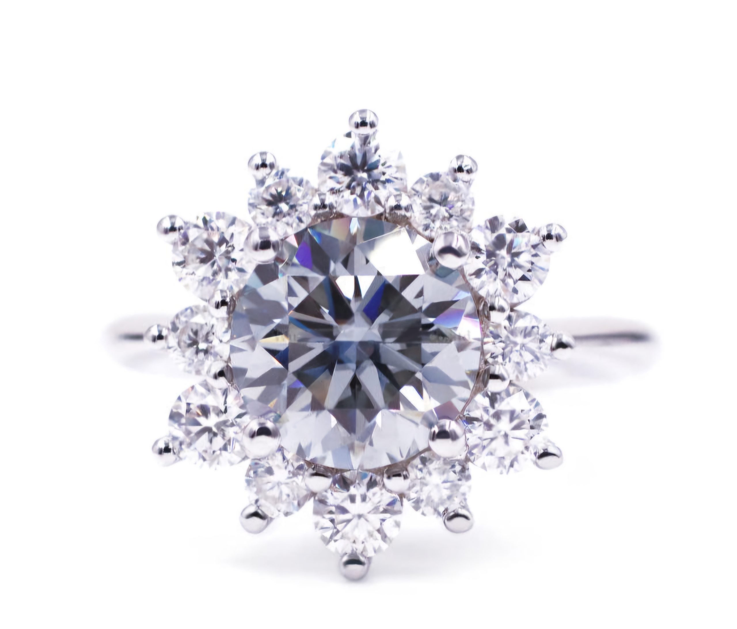 Indulge in Timeless Luxury. This 2.2ct halo moissanite diamond ring is a statement of refined elegance.